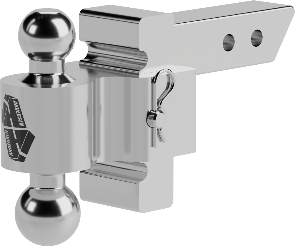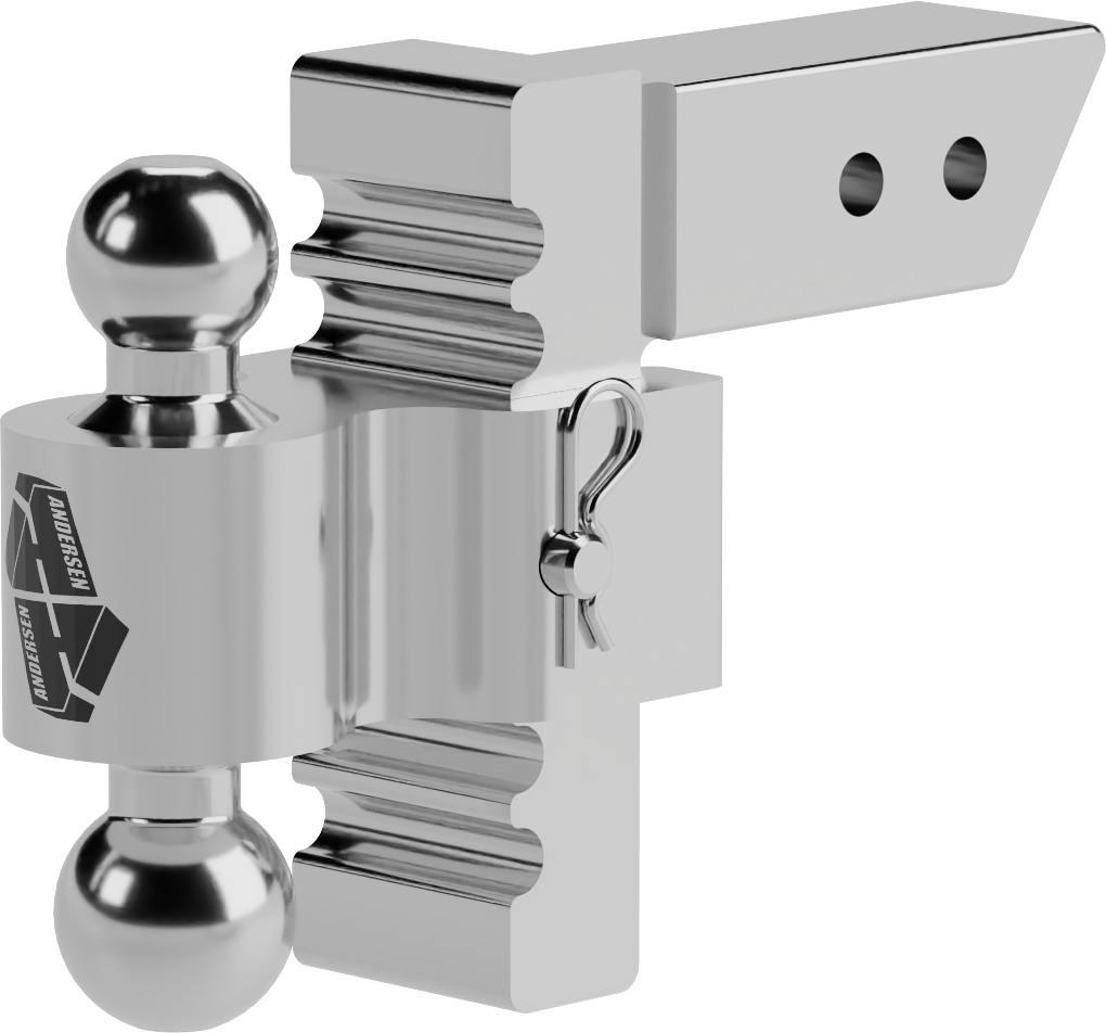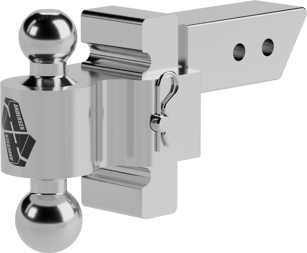 The Andersen Rapid Hitch is a heavy-duty adjustable ball mount designed to provide precise trailer leveling and secure towing performance. Built from solid aluminum with a corrosion-resistant finish, this adjustable hitch allows you to easily match multiple trailer coupler heights while maintaining a strong, stable connection.